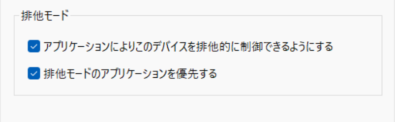 Windows側で「アプリケーションの排他モード」に対応できるように設定